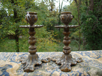 ANTIQUE ORNATE BRASS CANDLESTICKS