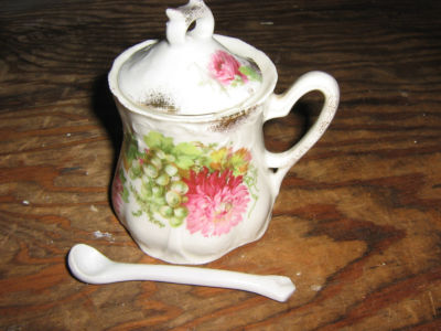 1920s PORCELAIN FLORAL MUSTARD POT OR MUSTARD JAR NO RES. FREE SHIPPING