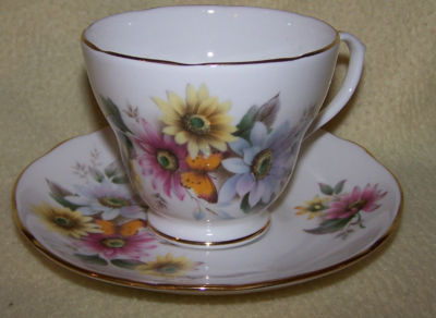 Duchess Butterfly and Daisies Teacup Tea Cup and Saucer