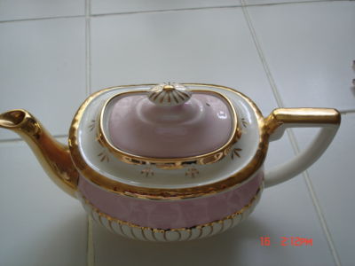 BEAUTIFUL VTG. TEAPOT PINK & WHITE W GOLD TRIM GEORGIAN GIBSONS ENGLAND NUMBERED