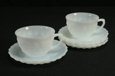 Fire King Bubble White Milk Glass 2 Cups 4 Saucers 6 Pc