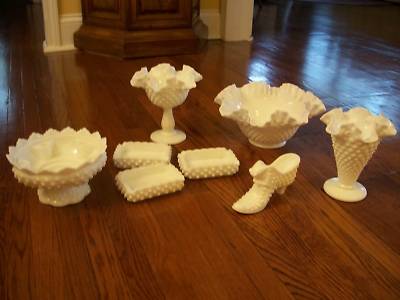 Fenton White Hobnail Milk Glass LOT Bowls-Shoe-Trinkets