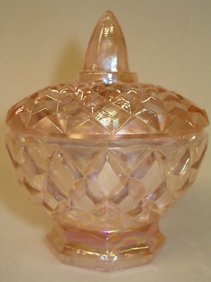 Title (ebay affiliate link): PINK CARNIVAL ART GLASS POWDER JEWELRY BOX CANDY DISH RING IRIDESCENT DEPRESSION
