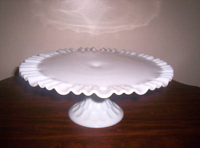 Fenton Milk Glass Pedistool Cake Plate Thumb Print EXC