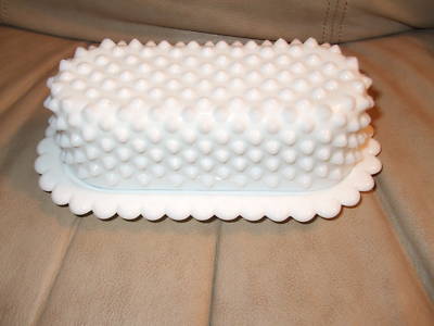 WHITE HOBNAIL MILK GLASS BUTTER DISH FENTON