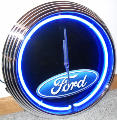 Title (ebay affiliate link): FORD Blue Neon Ring Quartz Wall Clock Round Chrome Bezel