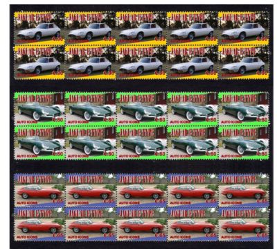 JAGUAR E TYPE, AUTO ICONS SET OF 3 MINT STAMP STRIPS
