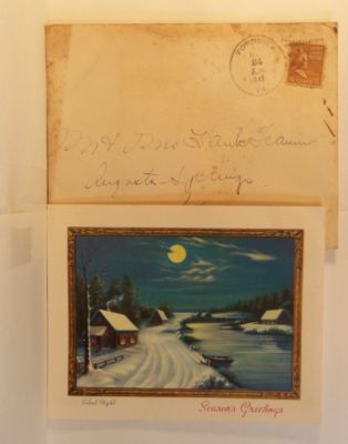Title (ebay affiliate link): 1941 Silent Night CHRISTMAS CARD CHEVROLET Matthews Motors Craigsville Virginia