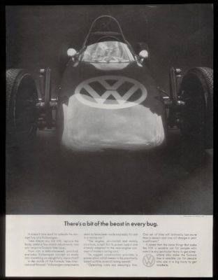 Title (ebay affiliate link): 1967 VW Volkswagen Formula V VEE race car 'a bit of a beast' photo vintage ad