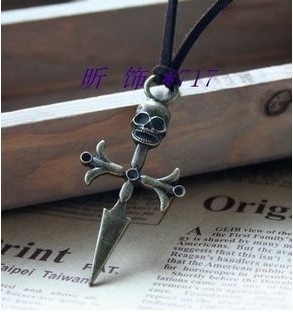 New Vintage Antique Brass Skull&Cross Pendant Necklace