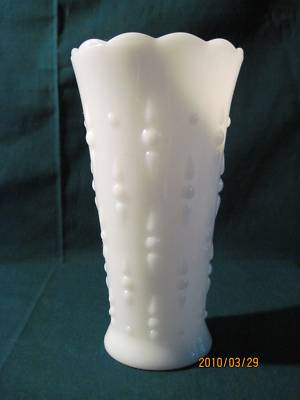 Beautiful Vintage Milk Glass Beaded Flower Vase 7 Tall