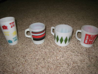LOT OF 4 FIRE KING MILK GLASS COFFEE MUGS