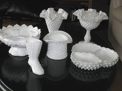 LOT 6 VINTAGE FENTON MILK GLASS SHOE HAT CANDLEHOLDER +