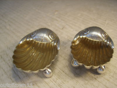 Pair Silver Plate Shell Shaped Salts