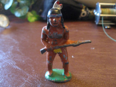 Vintage Metal Indian with Rifle Stand Up Figure Toy BR