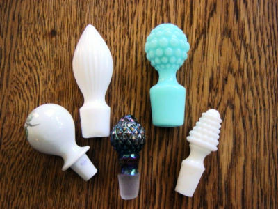 Glass Bottle Stoppers Assortment,Carnival,Milk Glass