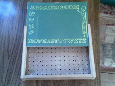 Title (ebay affiliate link): VINTAGE ANTIQUE ABC SLIDE OUT CHALKBOARD CARRYING CASE WOODEN CHILD PEGBOARD