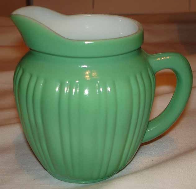 VINTAGE FIRED ON GREEN MILK GLASS CREAMER CREAM PITCHER