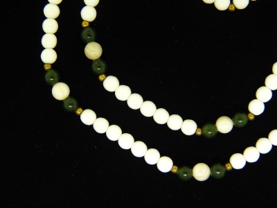 VINTAGE WHITE MILK GLASS JADE MOTHER OF PEARL NECKLACE