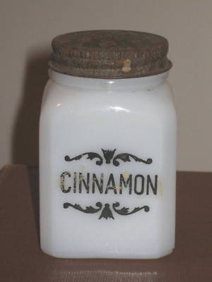 Old Milk Glass Cinnamon Spice Shaker w/ Metal Screw Cap