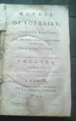 Title (ebay affiliate link): 1792 BOOK THEATER DRAMA VOLTAIRE, CATILINA, ORESTIS, ORPHAN OF CHINA, LEATHER