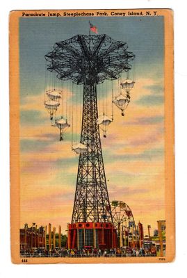Title (ebay affiliate link): Postcard 1940's Coney Island NY Steeplechase Park Parachute Jump