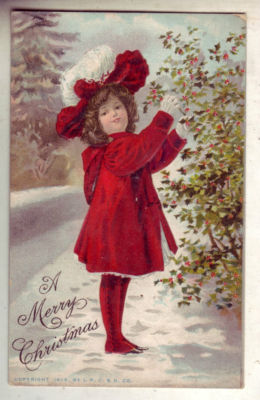 Title (ebay affiliate link): 1908 Christmas Postcard Young Girl Red Hat Ivy Embossed