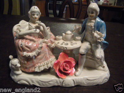 Title (ebay affiliate link): Victorian Era Sitting Couple Figurine w/Rhinestones, Lace & Poodle Capodimonte??