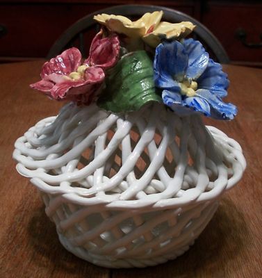 Vintage Capodimonte Covered Dish with Flowers