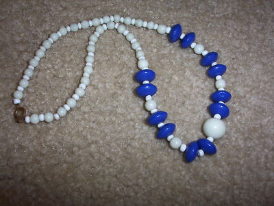 Title (ebay affiliate link): Vintage ( Old) White Milk Glass & Blue Glass Beaded Necklace
