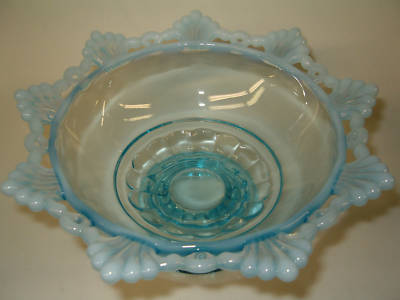 Title (ebay affiliate link): BLUE AQUA OPALESCENT ART GLASS CANDY FRUIT BOWL DISH SERVING RING AND PETAL MILK