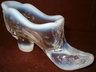 Title (ebay affiliate link): CRYSTAL CLEAR OPALESCENT ART GLASS CHRISTMAS BOW SLIPPER SHOE BOOT WHITE NR MILK