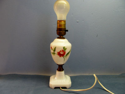 Title (ebay affiliate link): Vintage Hand Painted Milk Glass Table/Dresser Lamp no Shade