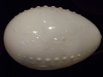 Old Milk glass Easter Egg embossed vine design with flower estate pontil