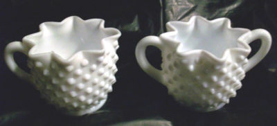 Title (ebay affiliate link): FENTON HOBNAIL WHITE MILK GLASS CREAMER AND SUGAR BOWL NICE!!