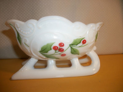 Title (ebay affiliate link): Westmoreland White Milk Glass Sleigh with Green & Red Holly