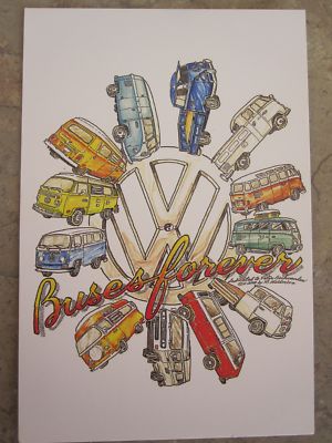 Title (ebay affiliate link): Bob Waldmire Route 66 color Post Card VW Buses Forever