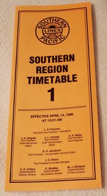 Title (ebay affiliate link): Southern Pacific Lines - Southern Region Timetable 1 - 1996