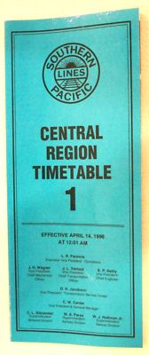 Title (ebay affiliate link): Southern Pacific Lines - Central Region Timetable 1 - 1996
