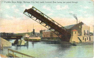 Michigan City Indiana FRANKLIN STREET BRIDGE 1910 postcard IN