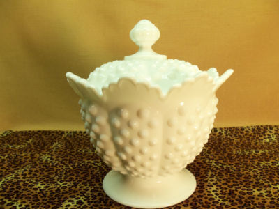Title (ebay affiliate link): Vintage Fenton Hobnail Milk Glass 6 1/2 Inch Candy Box Marked with Fenton Logo