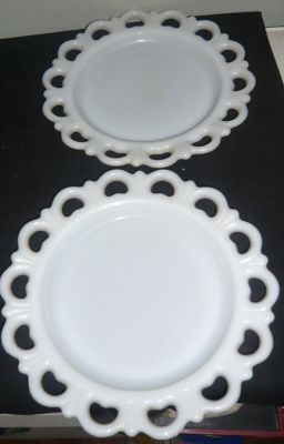 MILK GLASS OPEN LACE HEART EDGE 8" PLATES-2