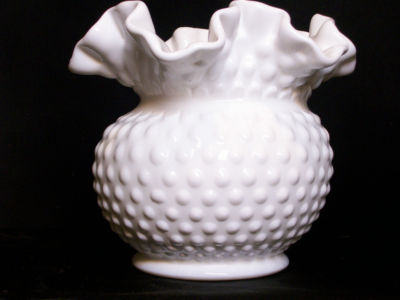 Title (ebay affiliate link): Vintage Marked Fenton Milk White Opaque Glass Hobnail Double Ruffled Vase 5 1/4"
