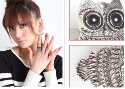 Retro Style Antique silver Owl Ring Adjustable R240