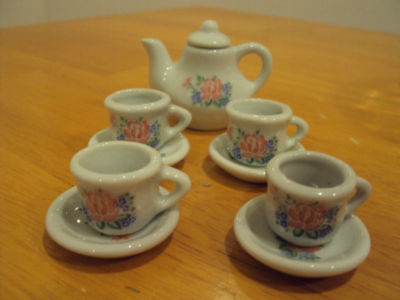 Title (ebay affiliate link): MINIATURE 2" TEAPOT TEA SET 4 CUPS & SAUCERS ROSES