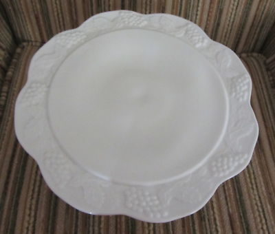 Elegant Vintage White Milk Glass Pedestal Cake Stand, Grapes & Leaves Pattern