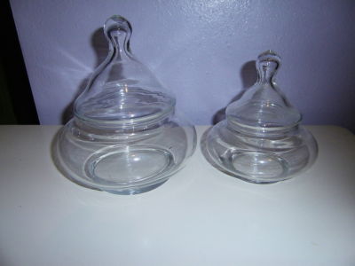 Title (ebay affiliate link): Vintage Set of 2 Varying Sizes Round Clear Glass Apothecary Candy Jars