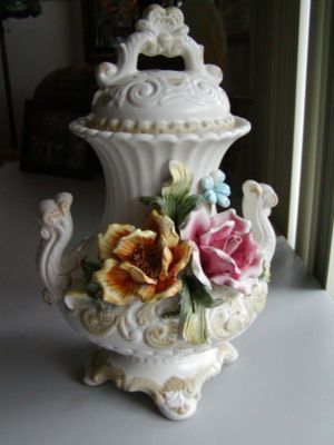 Title (ebay affiliate link): ANTIQUE CAPODIMONTE 12" LIDDED, 2 HANDLED URN - ITALY - ORNATE ROSES - MINT