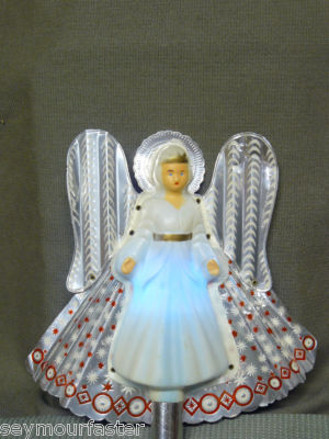 Vtg Peerless Foil Celluloid Christmas Angel Tree Topper Light IOB Lighted