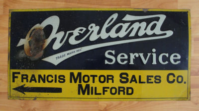Title (ebay affiliate link): Old Original Overland Service sign. Francis Motor Sales Co. in Milford
